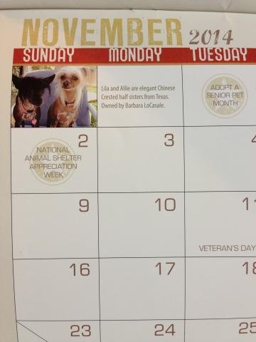 Lila and Allie (2014) raised money for the St. Augustine Human Society and were the November models. Please donate by calling 904-829-2737, email: info@staughumane.org and/or visit www.staughumane.org.