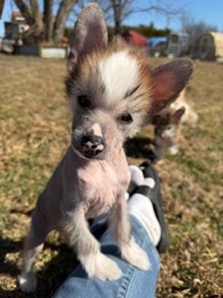 Brax is a male Chinese Crested puppy with a sweet, affectionate personality. He is playful, people-oriented, and loves cuddles. Raised in a loving environment, Besso is healthy, well-socialized, and ready to be a cherished companion. Perfect for someone looking for a loyal and loving little shadow.